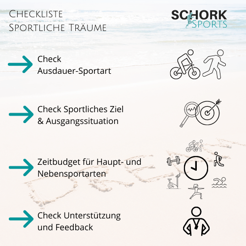 Wir haben Dir eine Checkliste erstellt, mit der Du Deine passende Trainingsbetreuung findest und so Deine sportlichen Träume verwirklichen kannst. Dabei werden u.a. diese Fragen gestellt – und mit einer professionellen Trainingsbetreuung beantwortet: