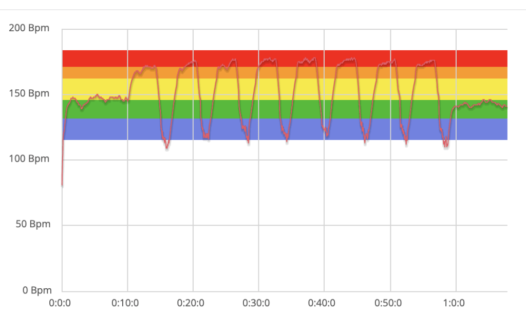 Entwicklung der Herzfrequenz, im Hintergrund die Trainingsbereiche